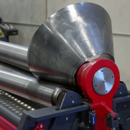 - Формирование конуса – заготовка пропускается через вальцы, которые постепенно изменяют её форму, придавая коническую конфигурацию.